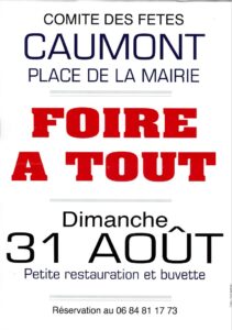 ![]() La Foire à tout c'est le 31 août 2025 ! Renseignements et informations : 06 84 81 17 73.  |
