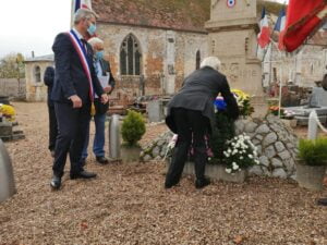 Après la lecture par le Maire du discours de Geneviève DARRIEUSSECQ, Ministre déléguée auprès de la ministre des Armées, chargée de la Mémoire et des Anciens combattants, le Président des anciens combattants de Caumont a lu le discours de l’Union Nationale des Combattants, fait l’appel des caumontais morts pour la France lors des différents conflits, puis celui des 20 soldats français morts cette année en opérations extérieures.