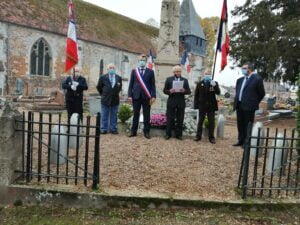Afin d’honorer la mémoire de ceux qui ont donné leur vie pour que nous vivions libres, la cérémonie s’est tenue en la présence restreinte de Robert BANNWARTH et d'Ernest BAZIRE, respectivement Président et Vice-Président du Souvenir caumontais, des porte-drapeaux Michel FRICHE et Christian LALEMANT, du Maire Sylvain BONENFANT et du Correspondant défense Xavier MORVAN.