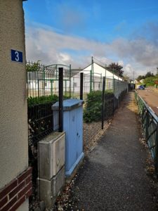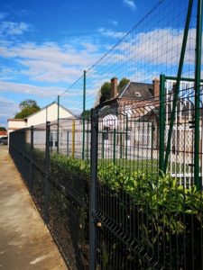 Le clôt (clôture et barrière) a été changé et monté à 2 m. Il conjugue esthétisme et meilleurs conditions de sécurité.