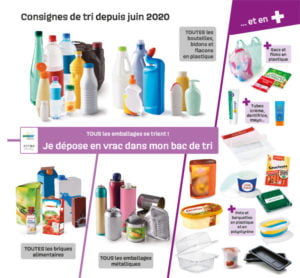 - Vous pouvez désormais y mettre vos pots (yaourts, crème, glaces), barquettes en plastiques et en polystyrène, sacs et sachets (surgelés, gruyère, bonbons…) tubes de dentifrices, pots de cosmétique... en plus de vos bouteilles, bidons, flacons en plastique et vos briques alimentaires, sacs et films, emballages plastiques.