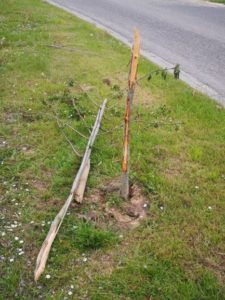 L'un de ceux-ci, ainsi que son tuteur, ont été cassés, vraisemblablement par un quad, au vu des traces laissées à proximité.